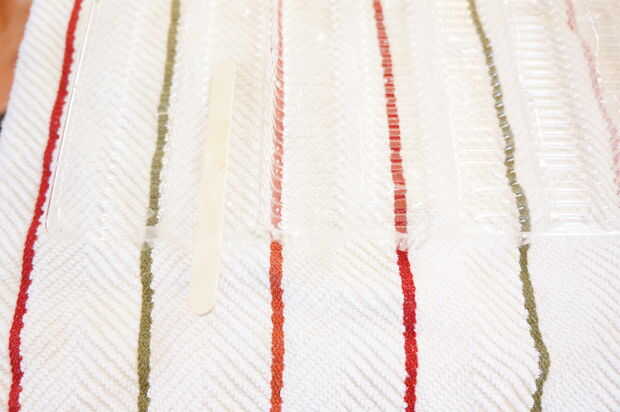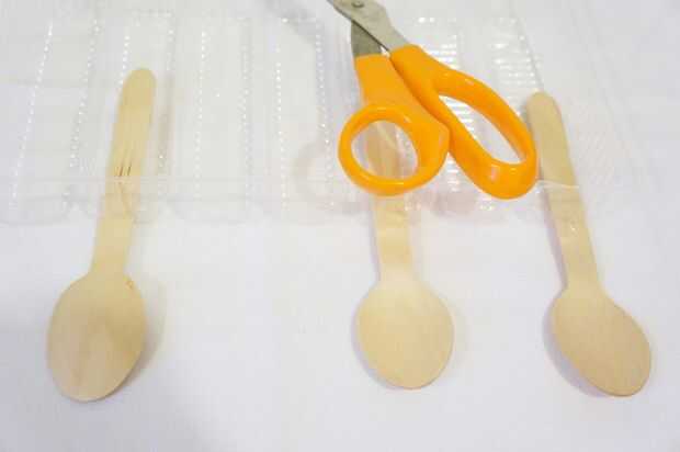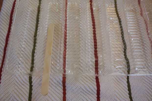 Simplemente corté una raja en un extremo del plástico palillo que Popsicle palos o cucharas en.