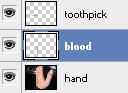 Crear una nueva capa (sangre) y colocar entre la capa del palillo de dientes y la mano.