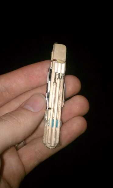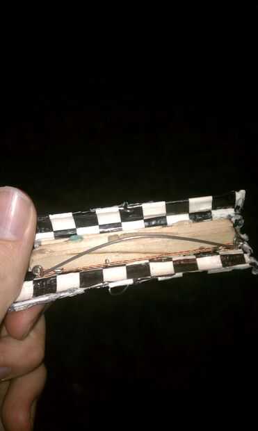 El caso se hace fuera de un marcador antiguo, cortado en 3 piezas, pegadas juntas y un alambre alrededor de él para mantenerlo cerrado.