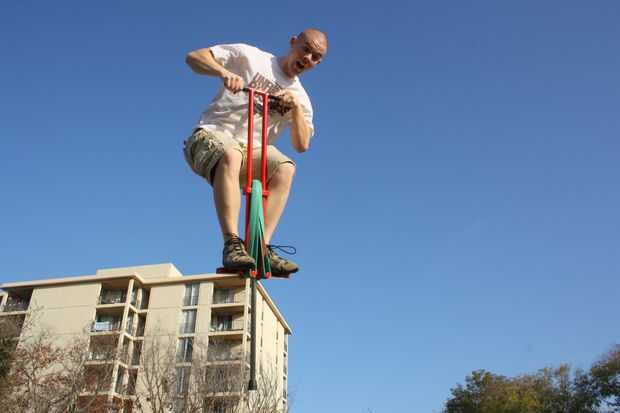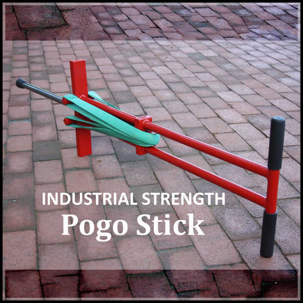 Resulta que los resortes de metal no son tan eficaces para hacer lo que necesita hacer (mas detalle en la sección de teoría) un palo de pogo. Personas han intentado otros métodos para obtener el gran rebote, de aire compresible (como en el de $369 "Vurtego") para hojas flexión ish de arco y flecha (como en el "Bowgo" desarrollado en Carnegie Mellon). Pero la manera más simple y más barata (y la forma en que el muy popular $349 Flybar utiliza) son utilizar bandas de goma.