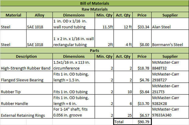 - pies 11,5 1" OD acero con tubería de 1/16 pared. Si usted puede conseguir acero chromoly (que se utiliza en marcos de la bici), va a ser un poco más fuerte, pero terminé usando SAE 1018 (sortof un acero al carbono genérico), que según mis cálculos de tensión y algunos bastante áspero uso del palillo de pogo es un montón lo suficientemente fuerte.