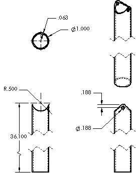 El eje central tendrá un agujero en la boca de pescado para garantizar otra pieza con. El agujero es de 3/16" de diámetro y se coloca 3/16 de pulgada de la punta boca de pescado.