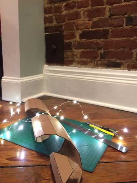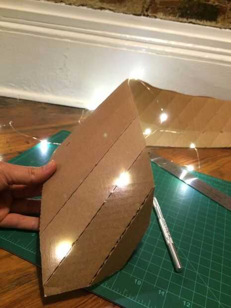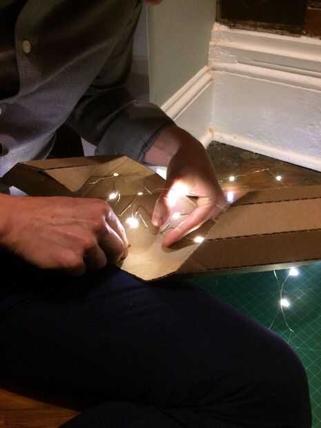 • (En ocasiones, necesitará el cableado para asegurarse de que las luces de su posición y no empujar hacia fuera demasiado lejos o caer después de que has enrollado el cartón detrás en la forma del perno de relámpago otra vez de la forma)