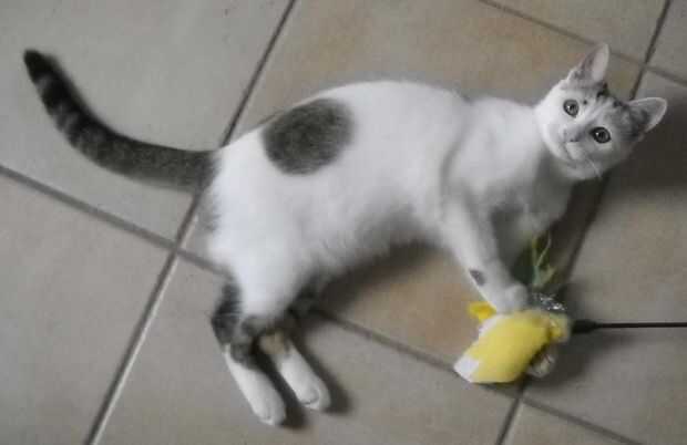 Porque soy malo, cruel y sádico como otros humanos (dijo que mis dos gatos).Historia: Los gatos son perezosos. Los gatos son cazadores naturales. Pero son vagos. Muy inteligente, pero todavía lento. Además, en su mente de depredador, no es normal ten