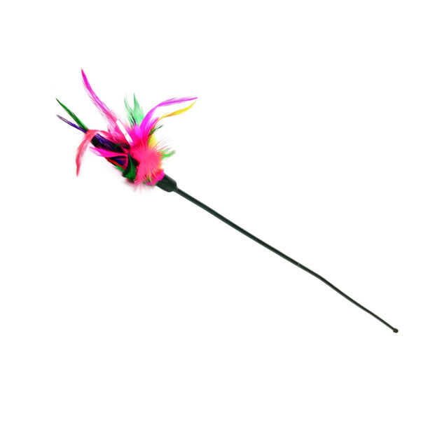 Compré un stick de pluma para mi gatito Enya. Ella destruyó en 2 semanas. Había plumas por todas partes excepto en el palo, así que decidí solucionarlo de una manera que sería igualmente divertido para Enya pero más fuerte.