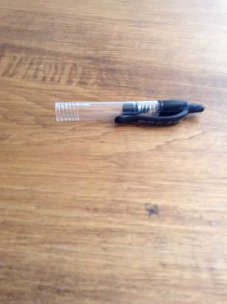 Tome la parte superior de la pluma y poner el clicker, y luego la primavera y luego el trozo negro Asegúrese de que el punto esté apuntando hacia abajo