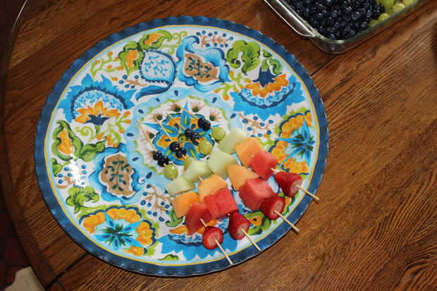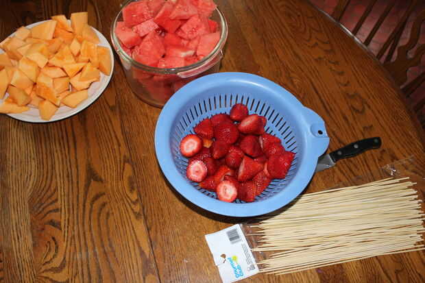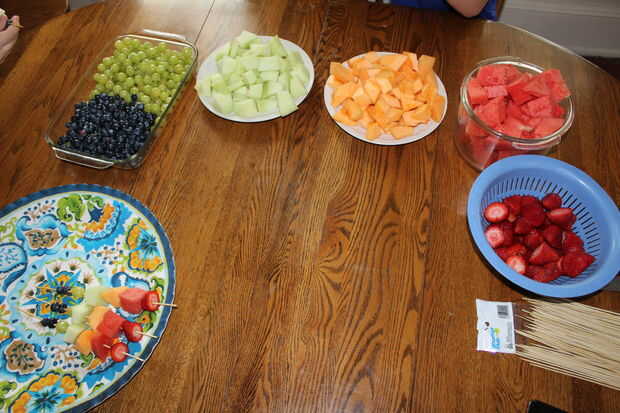 5. establecidos los tazones de fuente en el orden en que desea colocar la fruta en los palitos.