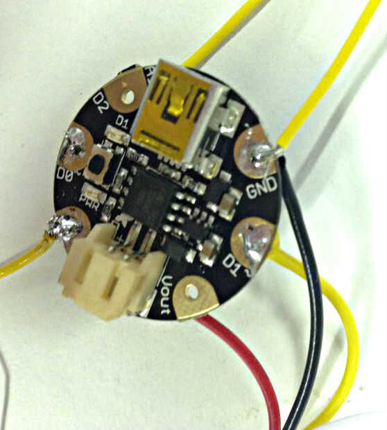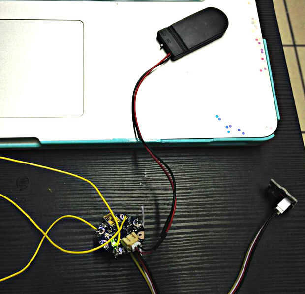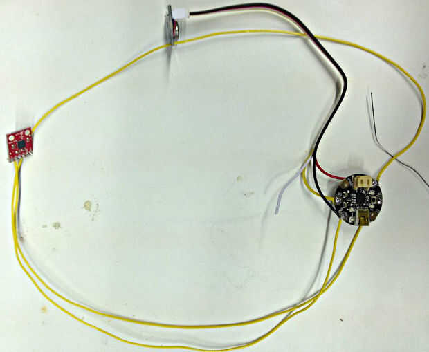 1) Conecte el Sensor GND a GND de Gemma, sensor VCC a gemma 3vo, sensor z a gemma D2.