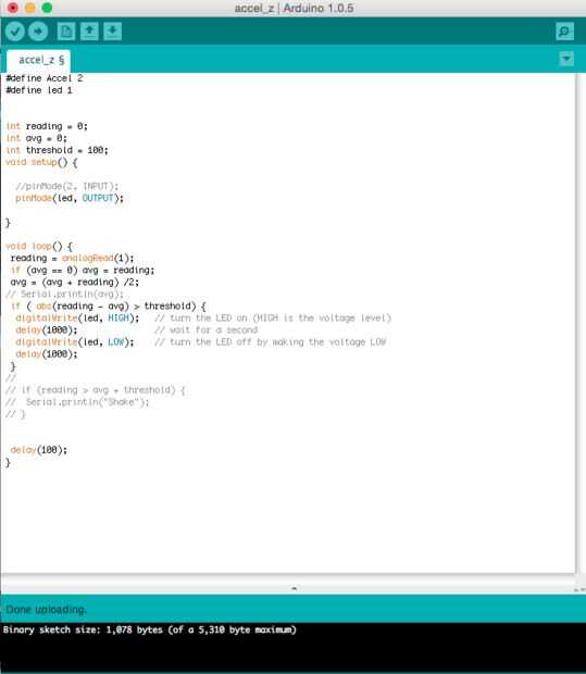 2) Conecte el Gemma a su PC / ordenador portátil otra vez con el usb, pulse el interruptor de gemma y mientras vibra, subir el código que se muestra en el cuadro 5.
