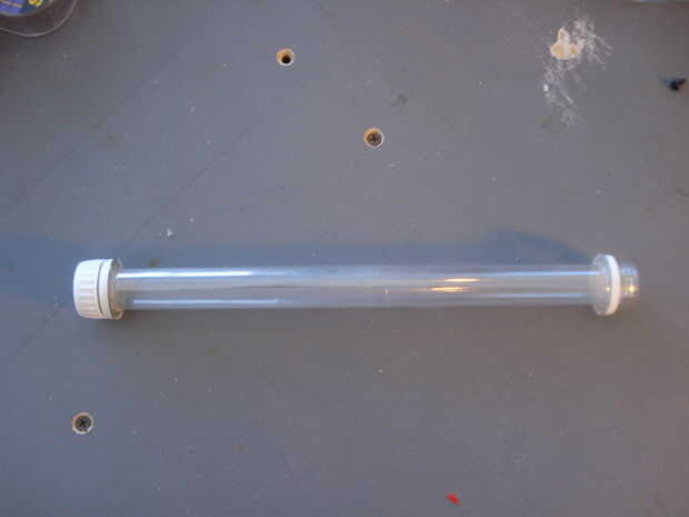 Tomar el rectángulo y cortar así que cuando usted rodillo conseguir un tubo de 1 más capas y un poco más lo que los palillos. Rodar y deslizar las tapas de los extremos, esto lo mantendrá en. Use la cinta para sellar la costura. Pegar las tapas en su lugar con epoxi. Ver las fotos.