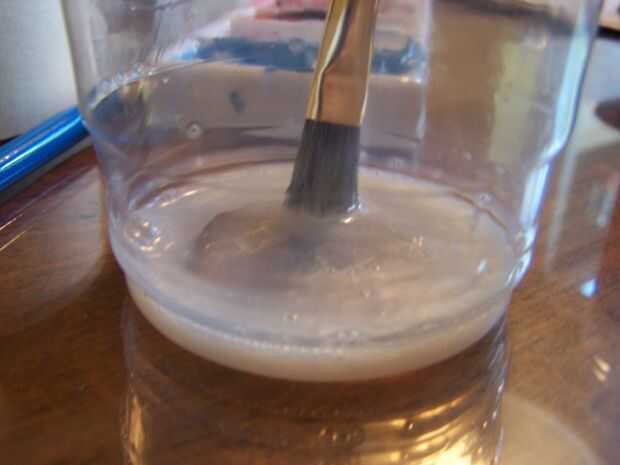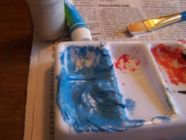 Lo opté por usar buena pintura azul y maixed con brillo de perla para darle algunas irradecant. Tengo los palillos en la parte inferior y la pintura tanto como puede, lo dejas secar, luego volver con una segunda capa y pintar el fondo, manteniéndolo en algún otro lugar.