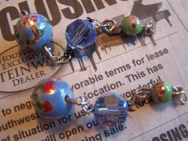 Organizar tus cuentas como gustaría ir. Se podrían hacer dos hilos por palo, siempre y cuando no sean demasiado pesados. Tomar aproximadamente una pulgada a pulgada y media de hilo y hacer un bucle ajustado en un extremo. El grano del extremo en que los cables de cadena y haz otro, más grande en el otro extremo. Tratar de hacer los lazos como cerca de los granos como sea posible. Fije 2 o tres enlaces de la cadena de la joyería en el bucle más grande. Adjuntarlo a otro gran bucle, otro grano de cadena en, hacer un lazo grande en el otro lado, y así sucesivamente hasta que todos los granos se unen. poner alguna cadena en la última perla para conectar a los palillos. Ahora simplemente Repita el proceso para el otro palo.