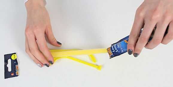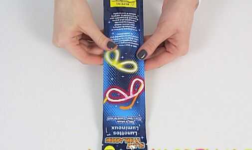 Abrir el paquete y retire anteojos, los brazos, puente, conectores y tubo que contiene palos. Retire el palillo del resplandor de la bolsa. Doblar y ajustar a lo largo de toda su longitud, luego agitar para comenzar el resplandor.