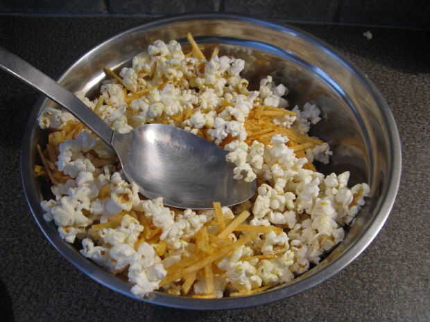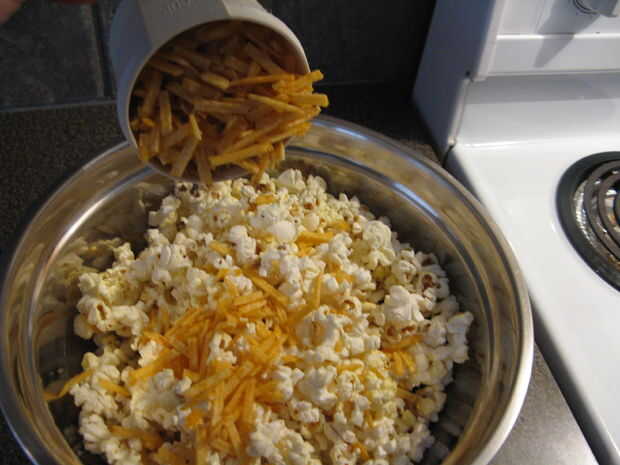 Añadir hickory sticks a palomita de maíz y mezclar