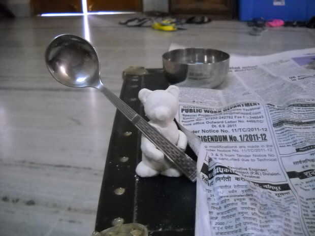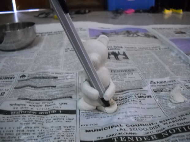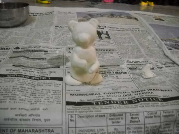 Coloque el artículo otra vez sólo para asegurarse de que en los pies descansarán el elemento. Una vez que hecho una depresión rellena grietas y espesar los extremos.