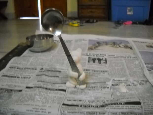 OK, esto es un paso fácil, tomar dos bolas de aproximadamente 1/3 del tamaño de la cabeza de cada uno y sólo un lado de la bola. El extremo redondeado hace que los pies y meter los extremos planos debajo del cuerpo y empujar el cuerpo hasta que comience a equilibrar. Es natural para saber qué hacer no sudor si no que, apenas consigue el cuerpo en equilibrio sobre los pies y fíjelos con agua.