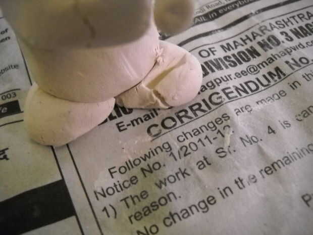 Para la cola a una pequeña bola rodó oblonga. Como una esfera ovalada con un extremo redondeado, fijar un extremo para el cuerpo y el otro extremo apuntando hacia abajo y tocar el suelo por lo que actúa como un apoyo, en caso de usar un elemento pesado.