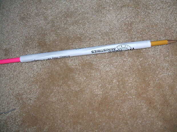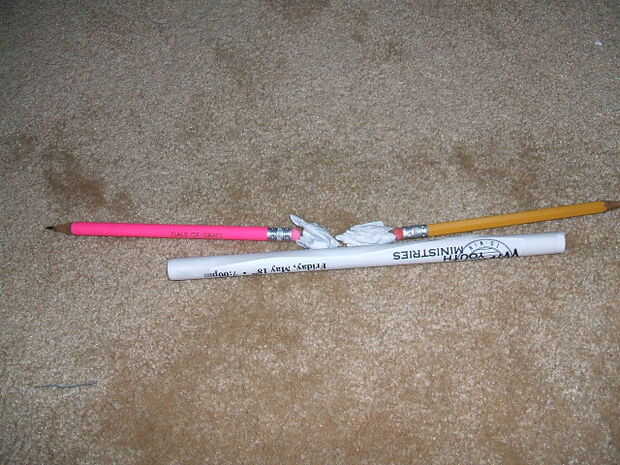 este instructable le mostrará cómo hacer un dardo que se pegue en la pared. Este es un proyecto fácil que cualquiera podría hacer.Paso 1: materiales materiales --un rollo de cinta-alguna cadena u otra cuerda fina-tijeras-una tuercay un color de lápiz