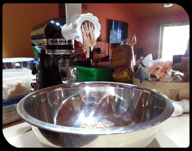 Retire las tinas de la nevera o el congelador y moler con el plato pequeño. Esto será emulsionado la mezcla de la carne es la consistencia adecuada - casi seguro, que para una mejor textura snack de palo. Interesante lado tenga en cuenta, también es cómo se llega a la consistencia de perros calientes y Bolonia.