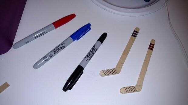 En la imagen superior se puede ver utiliza marcador negro para crear líneas en la hoja para representar a los jugadores de cinta aplicar a sus palos.