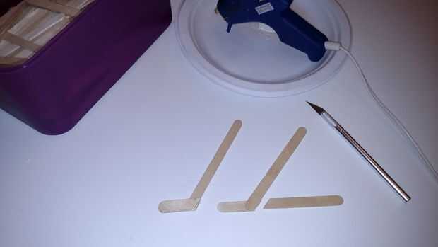 Regresar a la lección anterior: Tabla superior Hockey pista - arteResumen de la lección:En este proyecto aprenderás cómo convertir dos palitos estándar en un palo de hockey de mesa que puede ser utilizado con una pista de hockey de mesa. Este palo de