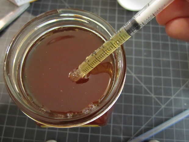 Use la jeringa limpia para extraer la miel. (Para este proyecto utilicé miel orgánica)
