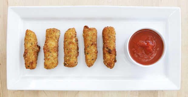 uno de los muchos alimentos de la mesa para los veganos es el palo del buen ol ' mozzarella. Frito con pan rallado y queso, este alimento no debe considerarse sano.Pero, ¿quién dice que nosotros no podemos hacerlo vegano? Utilizar un queso vegano bue