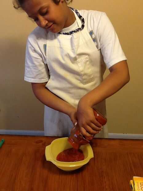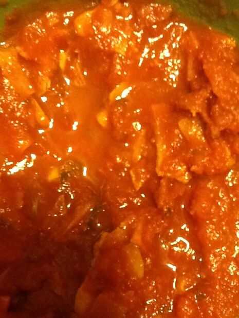 No importa cuando lo haga, siempre y cuando sea antes de iniciar la fritura, porque tan pronto como las cosas salen de la sartén, vas a querer cavar. Es simple. Sólo se cortan encima varias rodajas de tocino cocinado. Revuelva con la salsa marinara favorito. * Lamer la cuchara no es realmente recomendado en esta receta. Siempre se recomienda cantar en él como un micrófono.