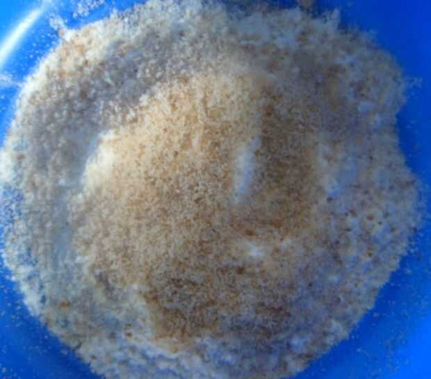 -El siguiente paso es agregar unos 2 migajas de pan cuchara mesa y amasar agregando agua.