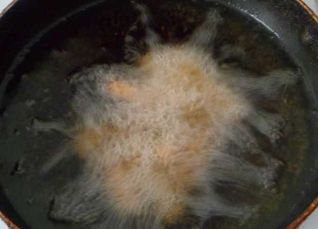 -Ahora freímos los palitos cubiertos en aceite a fuego medio hasta que doren en color.