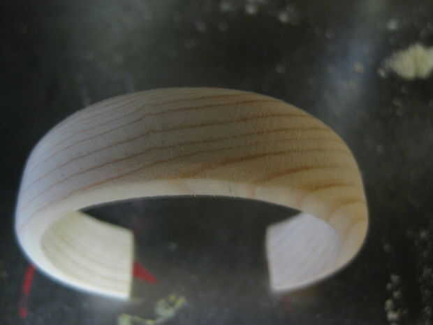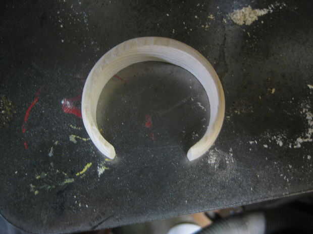 Este es su llamado, si haces el corte a los pequeños que se romperá al poner en. Sólo rompí uno tratando de hacer la apertura a la pequeña. La madera flex algunos, probar cortes en 1 cuarto de diámetro o menor. Diversas maderas se flexión diferentemente. Forma su liso cortes como van contra la piel cuando se ponga. Poner en el acabado deseado y sorprender a tus amigos cuando les dices esto vino de un palet. Si haces por favor Enviar foto.