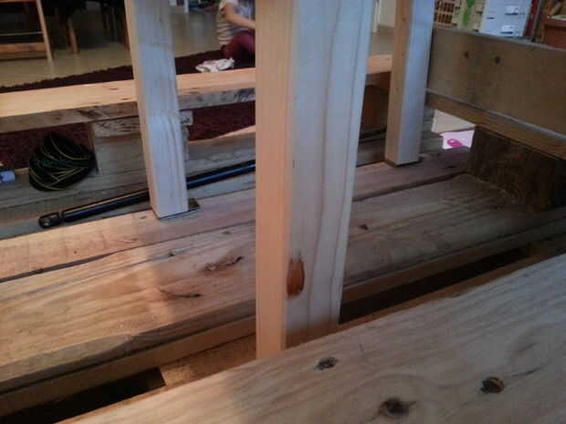 El mecanismo de elevación es accionado por 2 resortes de gas de un coche viejo.