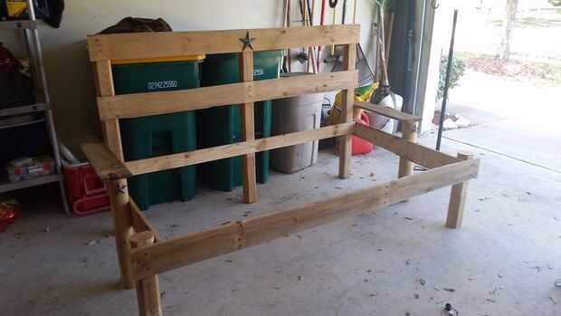 Tuve una plataforma nueva que no era necesario así que decidí hacer un banco de madera fuera de él. Recientemente hice el patio traseroasí que decidí que necesitábamos un nuevo elemento de sesión.-Después de romper la tarima en sus partes, utilicé mi