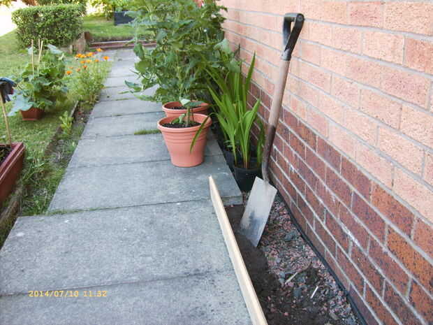Las losas fueron encima de una cama de grava, por lo que quité unas 3 pulgadas de grava a cierta profundidad.