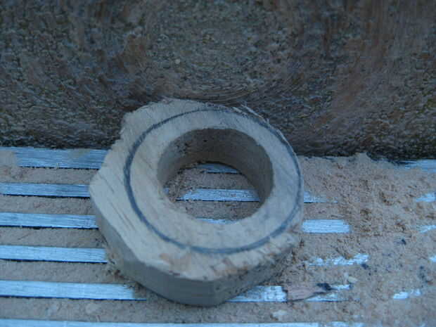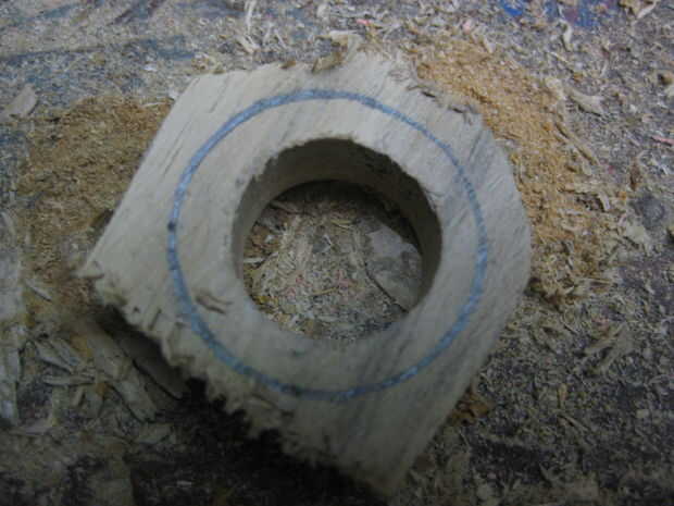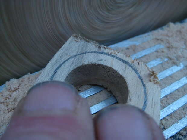 Recortar el exceso de madera que cerca el lápiz la línea que su cómodo con. ¡ OK aquí vamos, arena para la línea de lápiz. Usted tendrá un espacio en blanco perfecto. Entonces la delgada hacia fuera, yo solo comentarlo. No delgado o llegan muy fragile(see pics). Después tienes el diámetro de la forma que gusta, delgada a la altura de la banda para lo que quieras.