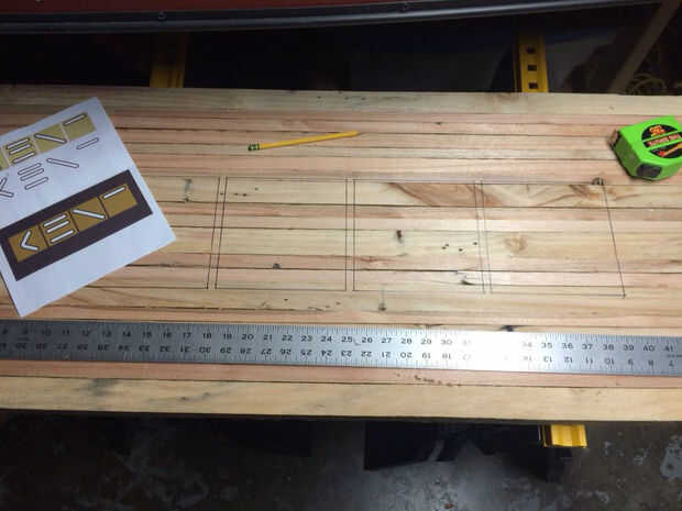 Esta tabla es para mi hermano así que quería embutido el logotipo de su empresa en la parte superior. Hizo otro tablón de madera de palet y tenía su logotipo recortado en un router CNC. Sólo solía un router de mano fregadero contrario la parte superior para aceptar los cuadrados del logo.