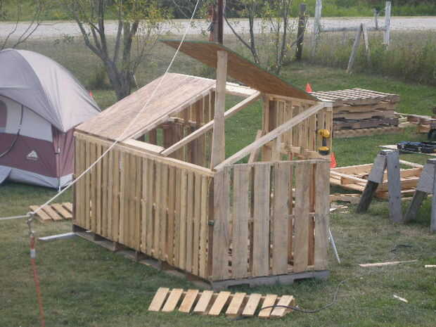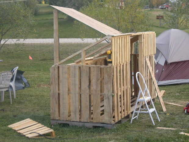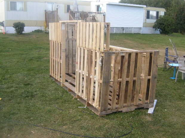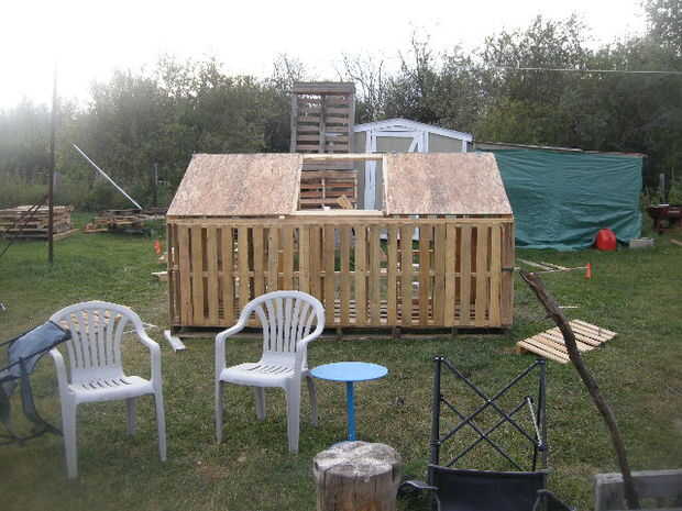 Hice una casita con palets y stud trabajar listones.decidí hacer algo con todos estos palets que tenía en el patio de mi trabajo que eran inservibles para nosotros, eran casi nueva y muy decente gruesa madera fuerte con los tableros de buen tamaño. E