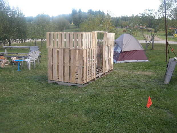 Este es un proyecto fácil que se puede construir en una hora o dos con material reclamado desde un solo palet o plataforma de varias tapas. Utilizan para asegurar las tapas de palleted material como el cartón o metal triturado para reciclar, tapas de
