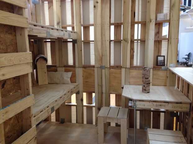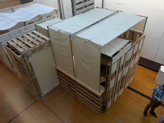 PalletPAD es un tercer año diseño construir el estudio de arquitectura de la Universidad de Marywood, Scranton, Pennsylvania. Nuestro objetivo fue diseñar un refugio temporal para una estrategia de preparación de desastre grande. El refugio debe ser capaz de albergar una serie de acciones que se realizaría en la rutina diaria de alguien.