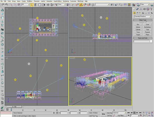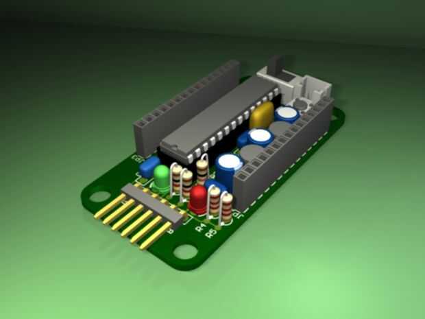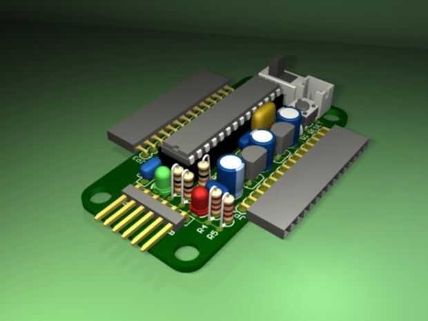 Después de terminar con la disposición del PWB creé PCB Virtual con programa de CAD (Autodesk 3DS Max 8). Para hacer un PCB virtual completo, también he creado todos los componentes de la electrónica (virtual) que eran necesarios en Palma Arduino exactamente con las dimensiones reales. Y los colocó en la placa virtual.