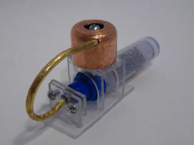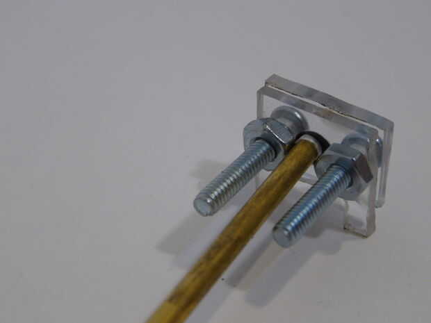 Un pedazo de tubo de latón de 1/8" diámetro interno estaba doblado en" U "forma de transportar el combustible de las piezas de plástico para el quemador. Se trataba de JB-soldado con autógena en lugar en ambos extremos.