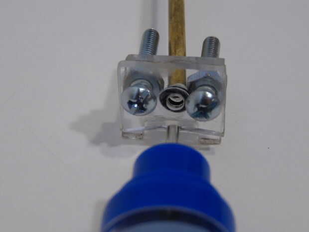 El quemador puede ser atornillado en su lugar en la parte superior de nuestra base en este punto, y JB Weld puede utilizarse para sellar completamente los bordes.