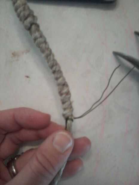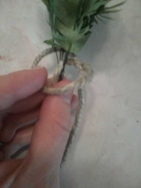 Una vez que todas las hojas hechas, le doy el paquete de cable un buen giro y cadena mi cáñamo a través de la parte superior de mi alambre torcido. Me empate una vez luego Envuelva la cuerda alrededor de la cuerda sobrante del otro extremo y el cable. Tomo unos trozos de alambre de la parte inferior y envuélvalos alrededor de mi cuerda firmemente para mantener la cuerda en su lugar. Corte la cuerda sobrante. Tampoco puede guardar el cable sobrante para ayudar a conectar a tu base o cortarlo. He añadido fotos de ambos métodos.