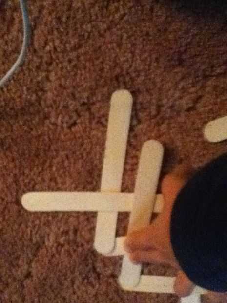 Paso 1: Haz cinco palosPaso 2: Ponerlos juntosPaso 3: Spreed les fueraPaso 4: Poner una palanca bajo bajoPaso 5: Poner el palillo pasado bajo sobrePaso 6: