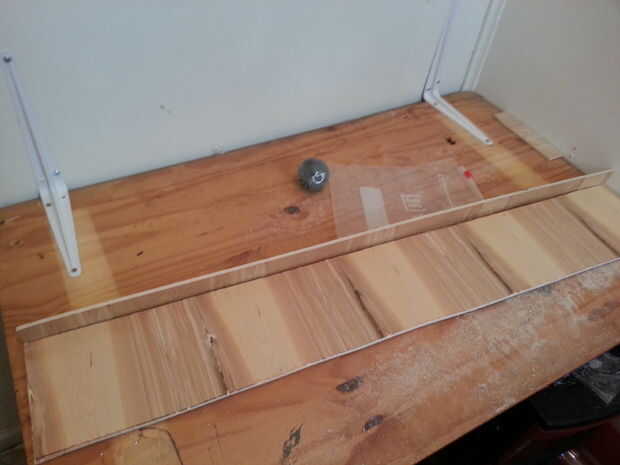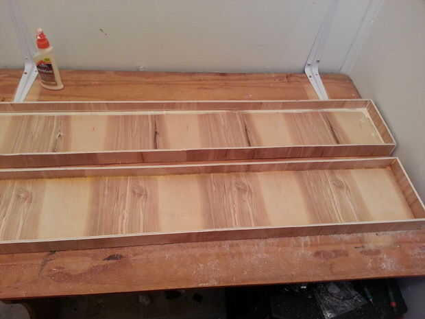This part is easy. Sólo uñas las piezas juntas y asegurar con pegamento de madera. Si no se utiliza pegamento de madera será débil y más propensos a romperse.  Use clavos pequeños y no muchos. Menos se utilice mejor. Ayuda a evitar que la madera de spliting. Vamos a hacer dos pedazos de espejadas. Usar un 6 1/2 de 40 1/2 como base y clavo 1 1/2 de 40 1/2 a un lado y el otro 1 1/2 por 40 1/2 al otro lado. Entonces uno de la 1 1/2 por 6 1/2 a un lado y el otro 1 1/2 por 6 1/2 al otro clavo. El resultado final será una caja rectangular. Luego se repetirá hasta que tenga dos piezas idénticas. Después clavan ejecuta pegamento de madera donde se reúne la madera. Luego deje reposar por una hora o dos.