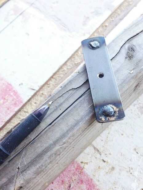 Marque el centro del borde. (La herramienta que se muestra en la primera foto es una versión metal de la madera para este Instructable).