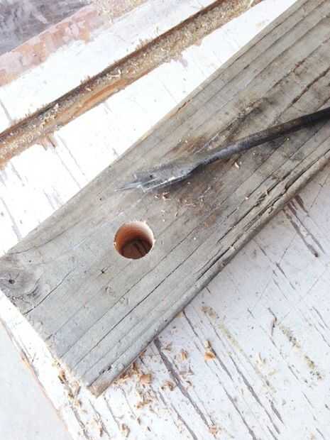 Perfore un agujero colocado como se muestra. Una tuerca de mariposa será dentro de este agujero para asegurar la manija. Este orificio puede utilizarse también para colgar el palo empujador en una pared.