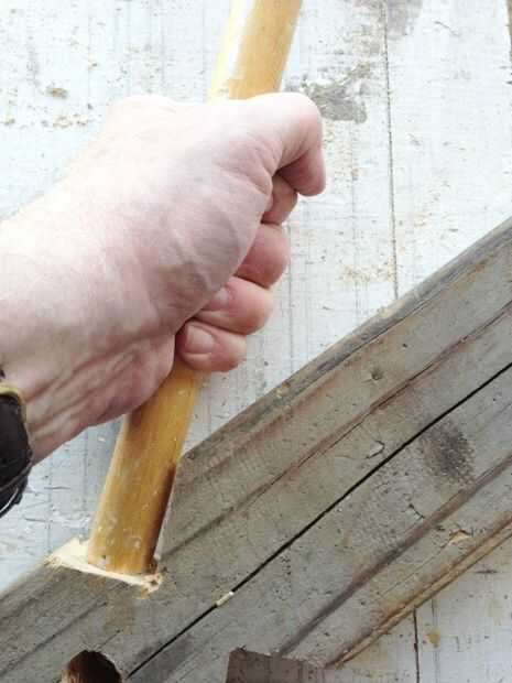 La versión Woodsmith hecha un mango de una pieza de material de 3/4 de pulgada. Había un montón de residuos con el fin de hacer que el grano de madera funciona en una dirección que no disminuyó la fuerza de la palanca.