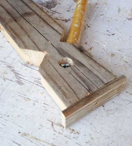Una pieza final hace una pestaña para evitar el empuje del deslizamiento en el trabajo. Arrancó unos 2 x 4 a un poco más de 1/4 de pulgada de espesor. Corte a 4 1/2 pulgadas de longitud.