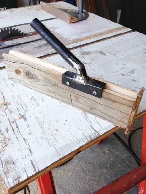 Quería que lo que está posteado aquí para una versión no soldado con autógena para aquellos que no tienen los soldadores. Mis usos favoritos versión un pedazo de ángulo de hierro soldado a un trozo de tubo que ha tenido una cuña quitada así que doblado y soldado con autógena cerraron para hacer una manija angulosa. Esta manija de acero se une con dos tornillos. Será fácil moverse para el otro borde o una nueva pieza de 2 x 4.